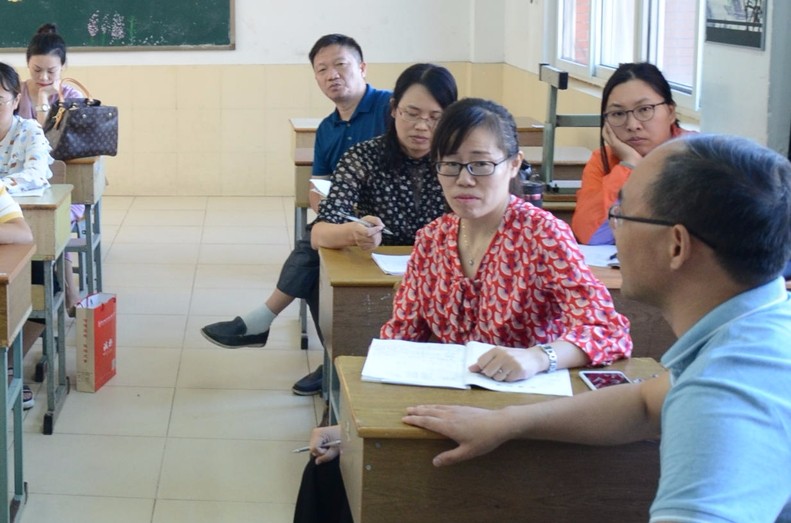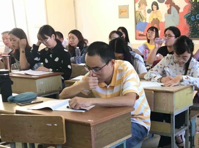 常州学校的老师们在会上也积极发言。首先,一位年轻语文老师表示我们都要做一名有情怀的语文老师,因为生活需要诗意和远方。接着,一位资深老教师给吴老师的这节课即兴赋诗一首,大家听后无不佩服这位老教师,掌声阵阵。最后,常州钟楼实验中学的教研组长总结发言,评价这是一堂有声有色、由扶到放、点评到位、由浅入深、入情入理的一节课,表示如果学生长期在这样的课堂氛围中不断熏陶,学生的语文素养就会慢慢得到沉淀,成绩自然也就上去了。窗外秋风簌簌,但是两所学校语文教师的研学热情深深地感染了我,正如那位老师所说,我们要做一名有情怀的教师,我们一直在路上。