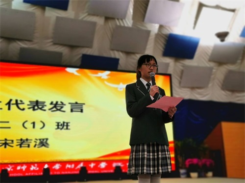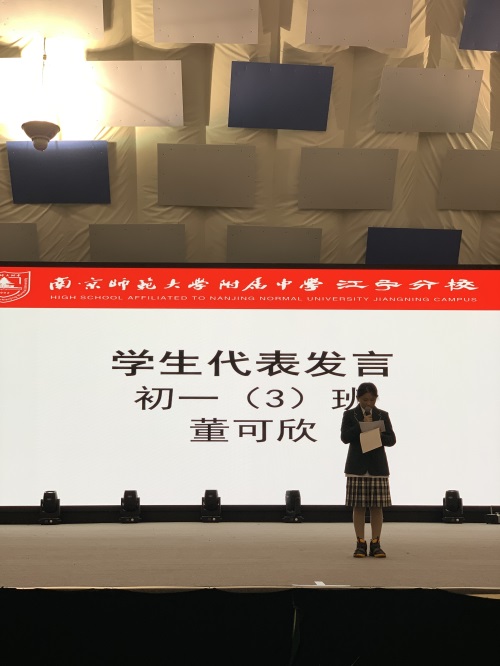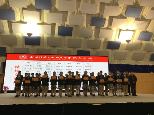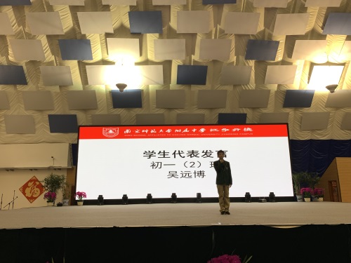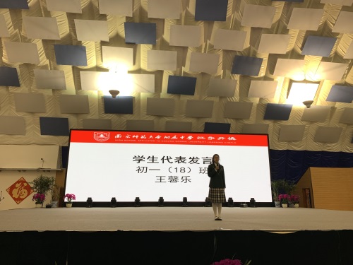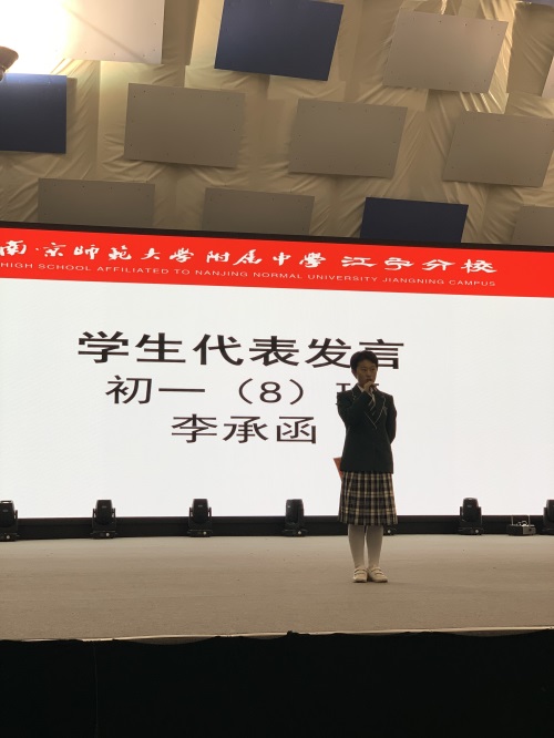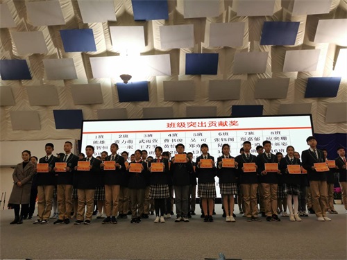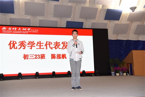 初三年级设置的奖项有:优秀班干奖、学业优秀奖、精神文明奖、自律奖、突出贡献奖。优秀学生代表初三(23)班陈泓帆同学进行了发言。年级主任颜中华老师做了“当属于你的机会到来的时候”的主题演讲。