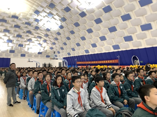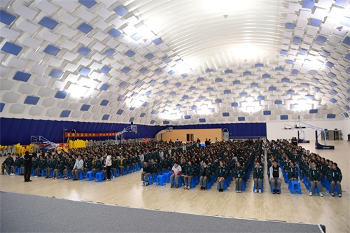 11月18日,初二年级在气膜体育馆举行了期中表彰大会。在主持人黄天怿同学和魏良辰同学真切的问候声中,掌声响起,也拉开大会帷幕。