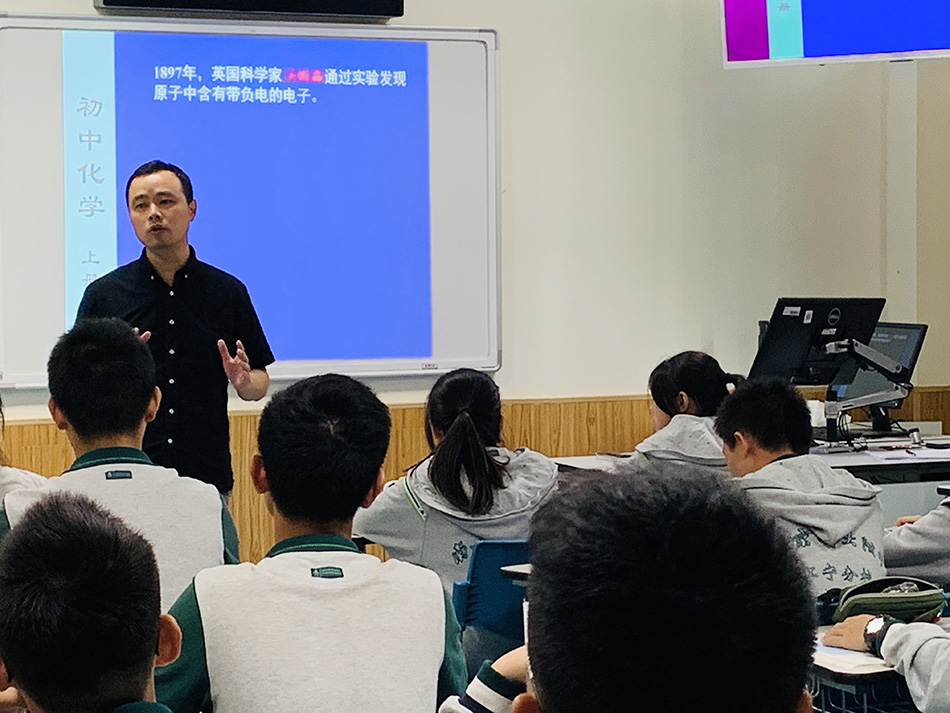 2019年9月20日上午,江苏省常州市钟楼实验中学一行37人来我校交流学习。上午,化学组的王镭老师开设了精彩的“少教多学 精讲课堂”公开课《原子的构成》,受到与会教师的高度好评。 第四节课,初中化学教研组与来宾进行交流、评课。校际间的交流切磋学习,推动我们教学业务互通有无,共同成长。