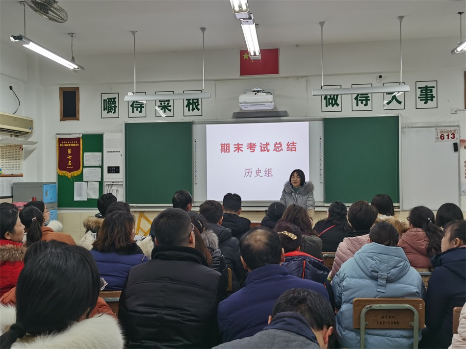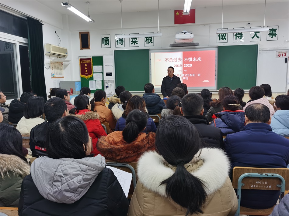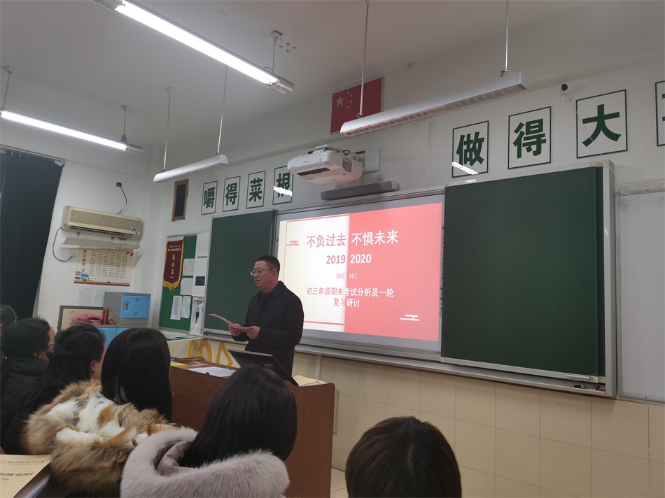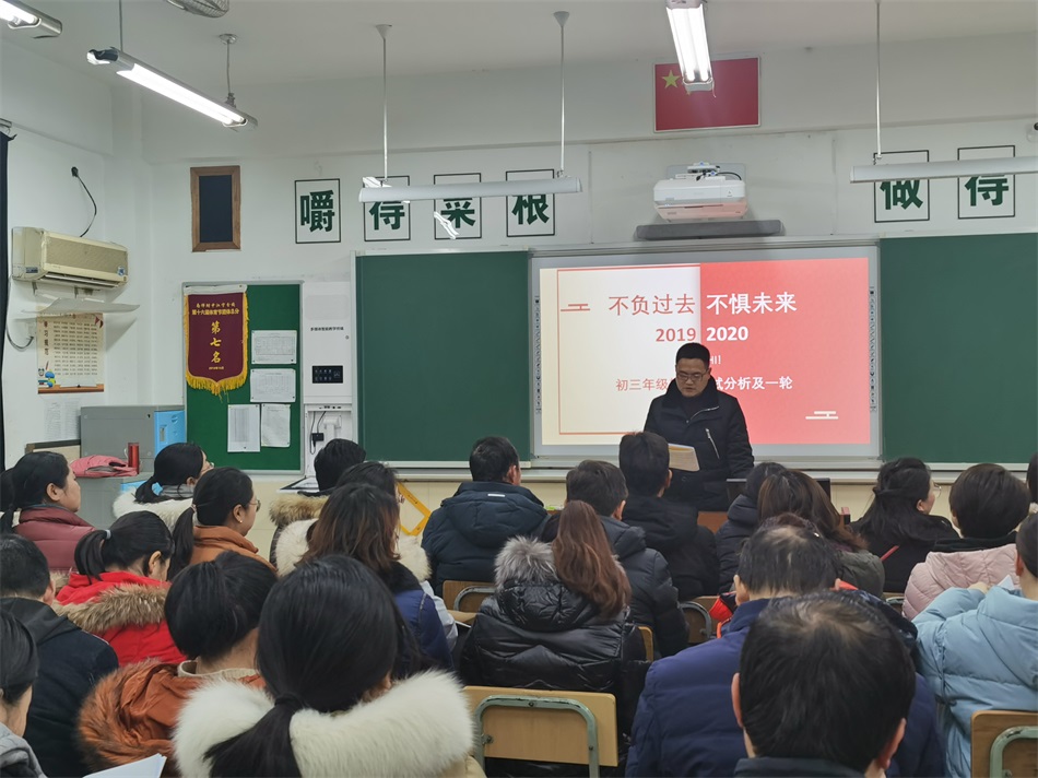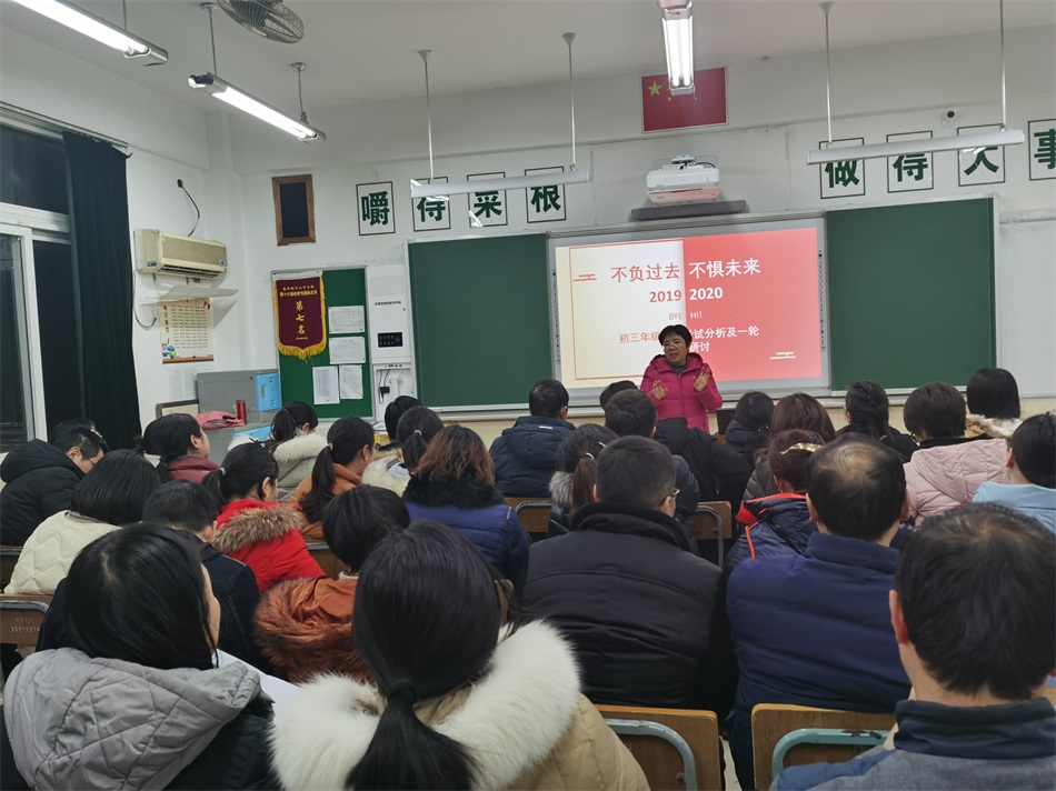 2020年1月17日,我校举行了初三年级期末总结大会暨一轮复习研讨会。石爱平副校长、颜忠华主任及全体初三教师出席了本次研讨会。本次会议的主题主要是反馈期末考试存在的问题、分析原因及解决措施、明确一轮复习的目标并讨论如何提高一轮复习的有效性。会议分两个阶段进行。