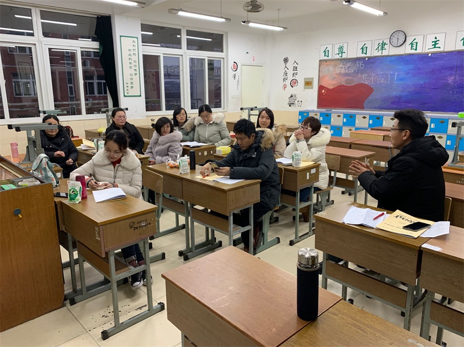 然后,由各学科教师分组进行讨论,主要研究本学科本学期教学的得失,提出改进措施,并讨论一轮复习的目标和计划。大家不仅讨论了复习的目标、计划以及在有限的时间内如何提高一轮复习的有效性,还讨论了如何利用这个寒假对学生的学习进行远程指导问题、如何通过广博的积累、精准地训练来夯实学生的基础等问题.