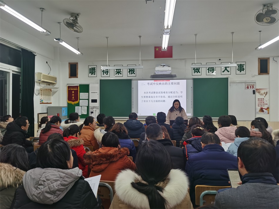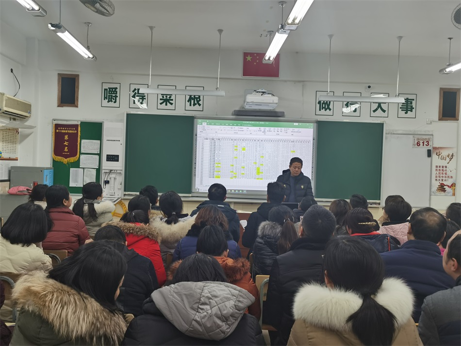 研讨大会首先由初三年级主任颜忠华老师就本次期末考试的总体情况进行了全面的分析,重点提出了如何促进尖子生、边界生和待优生卓越发展的问题。