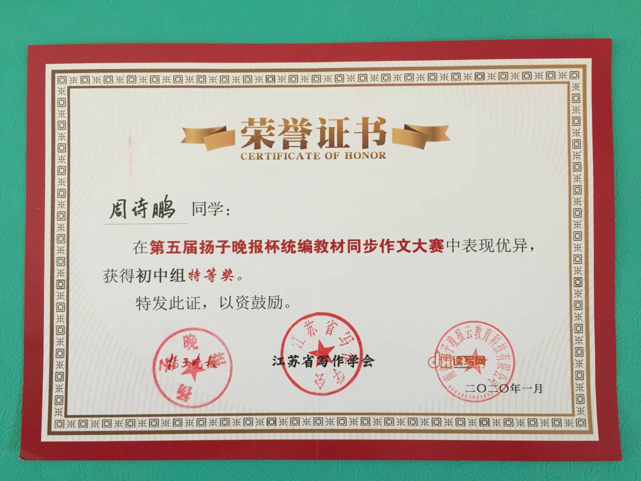 1月18日,备受瞩目的第五届“扬子晚报杯”作文大赛总决赛在南京市中华中学举行,来自全国各地近1200名中小学生现场进行“巅峰对决”,众多专家现场评分,当场公布结果,我校学子不负众望,荣获佳绩,获奖层次和人次位列南京市前列!
