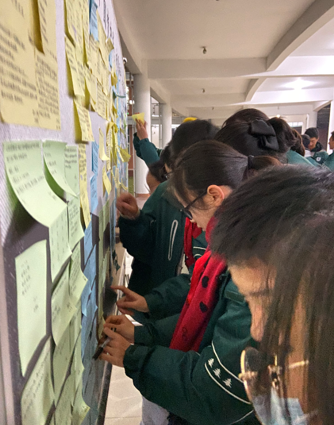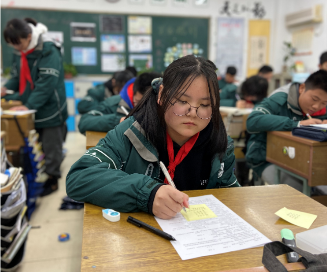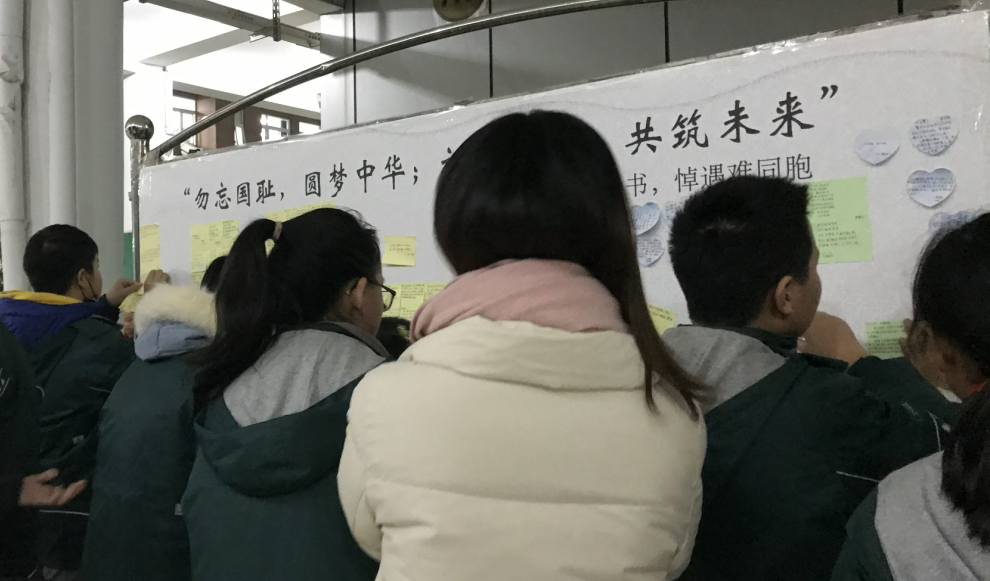 12月7日下午初二全体学生用一张小小的纸,写下自己对历史,对战争、对和平的感悟。