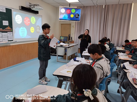 陈雪老师本节阅读课与阅读圈活动进行有效结合,从Background Collector,Summarizer,Character Analyzer到Connector,学生完成了自主阅读一独立思考一联系自身一提问分享的过程。同时,陈雪老师注重知识的拓展,带领学生阅读有关紫禁城的文章,探讨紫禁城为什么是紫色,围绕主题进行群文阅读教学,是一种新的尝试。最后的展示环节中,学生对不同景点和建筑物的色彩提出自己的设计和依据,体现了创新意识和能力,是本堂课的高潮部分。在陈老师的课堂中,学生的学习空间增大了,学习机会增多了,学习热情增长了,学习思维也增速了,在课堂中真正落实了英语学科核心素养。
