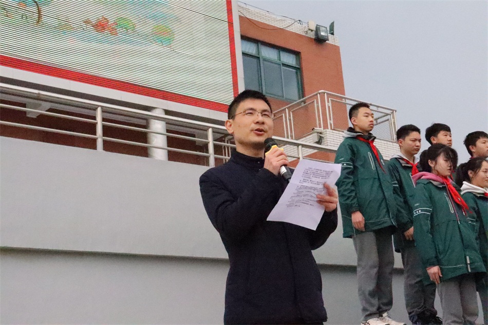 颁奖仪式后初二8班班长李承函同学带领全班同学向全校师生发出倡议,号召大家树立远大理想,勤奋学习、保护环境,与春相约,筑梦成长!在主持人介绍完班级和旗手后,升旗仪式在一首致敬建党一百周年的改编歌曲《少年》音乐声中落下帷幕。