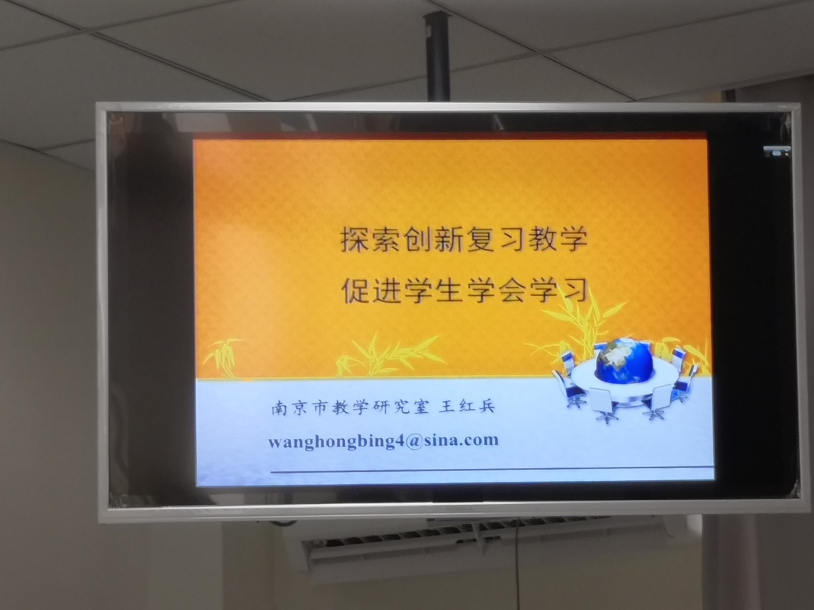 整个活动由三个讲座构成,第一位老师着重于解题教学,第二位老师注重于复习时知识之间的“关联性”,第三位是市教研员王红兵老师的讲座《探索创新复习教学,促进学生学会学习》。