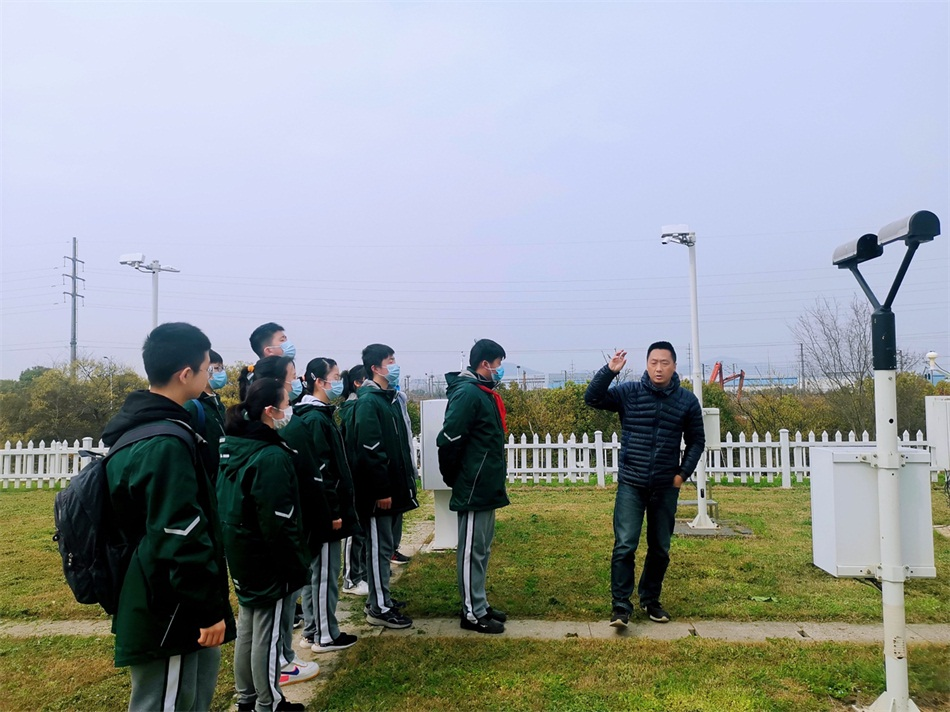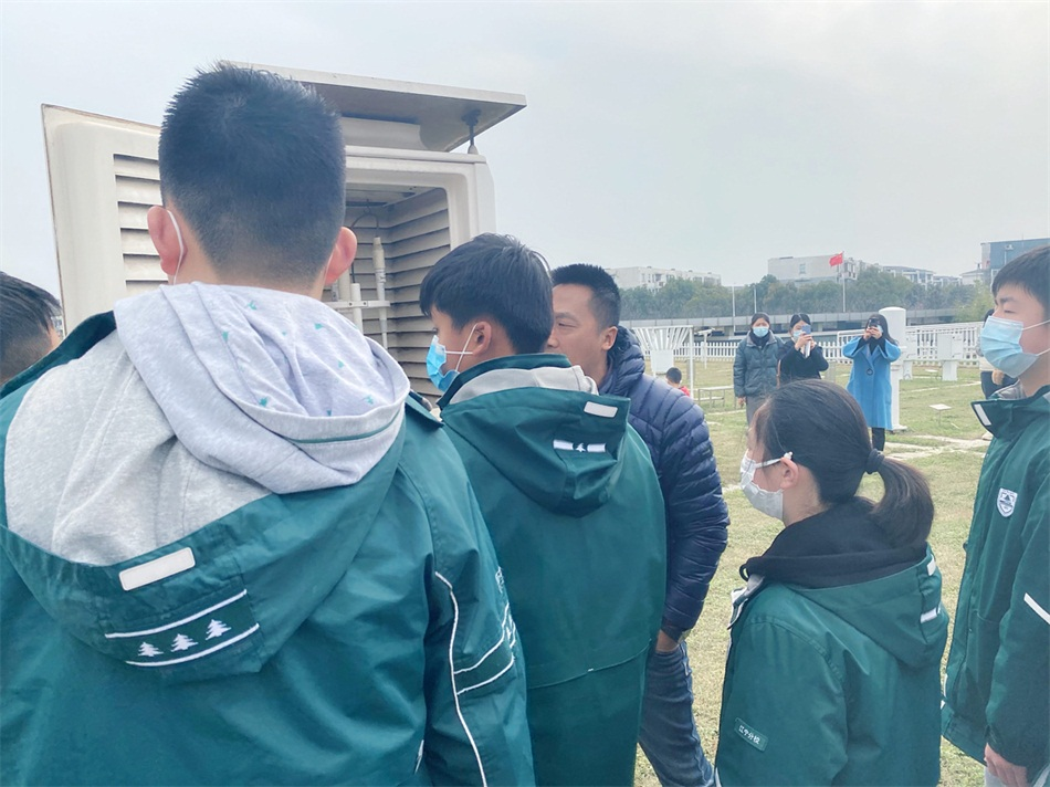 南京江宁区国家基准气候站工作人员向同学们介绍气象观测分析工作