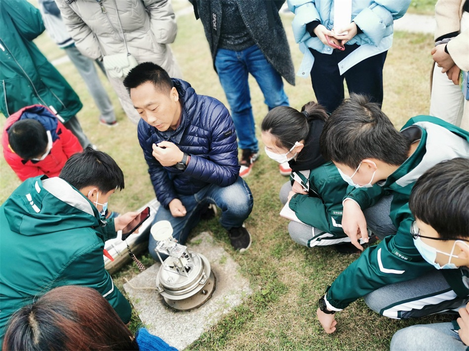 南京江宁区国家基准气候站工作人员向同学们介绍气象观测仪器