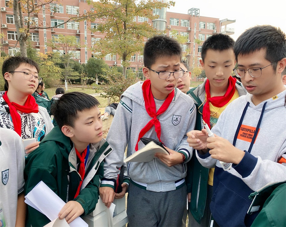 南京江宁区国家基准气候站的工作人员向同学们介绍基准站的历史