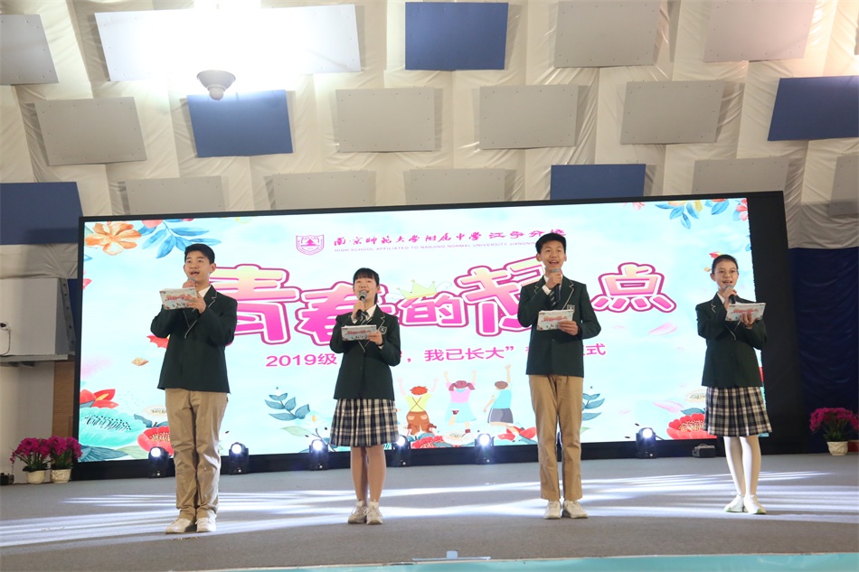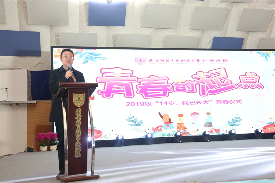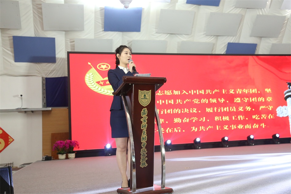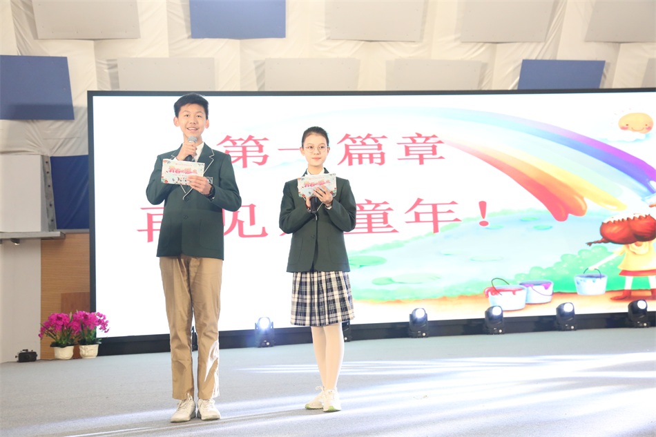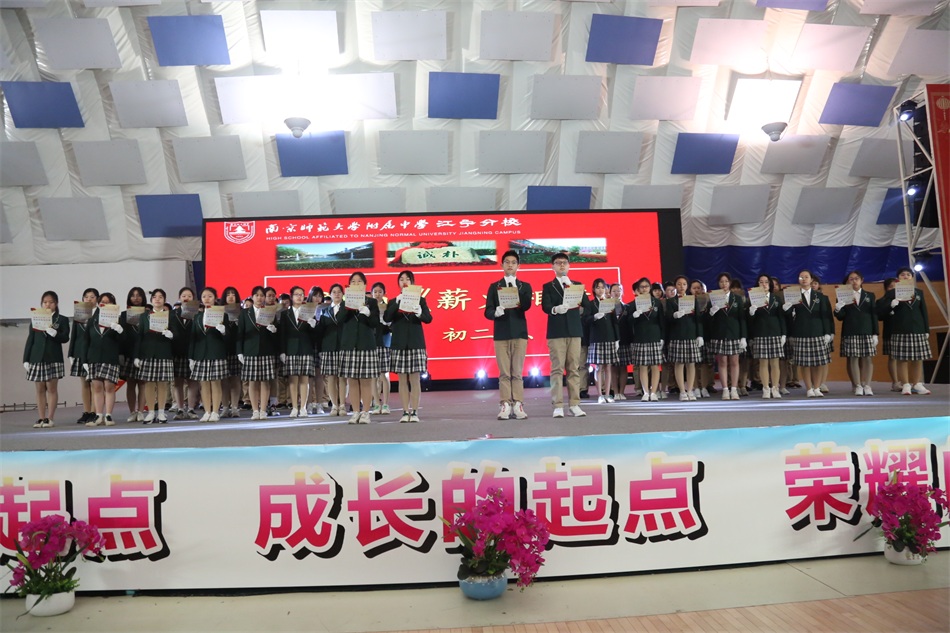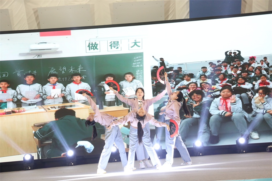 第三篇章“扬帆 起航”在副校长、初中部校长石爱平老师的青春寄语中开篇。他回顾了近年来奋斗在抗议一线的青春身影,以中国国产党百年来薪火相传的精神,勉励同学们勇敢追逐青春的梦想,并为之持之以恒、坚持不懈地奋斗。是啊,14岁的青春需要热血的梦想,更需要勇往直前的热情,新时代、新起点,少年不怕风雨狂,青春无悔创新章!接下来,由初二(21)班带来的歌舞《新的起点》把整个会场的气氛推向了高潮。伴着青春的旋律,同学们心潮澎湃,这难忘的一幕定会伴随着成长的脚步,奔向更高远的明天。