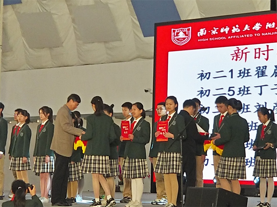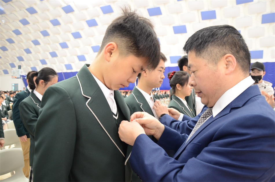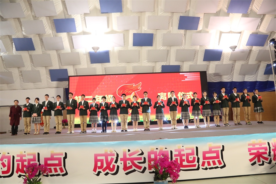 仪式在“有一种情怀,叫红领巾”的视频中拉开了帷幕,视频中一个个佩戴红领巾的笑脸把大家带回了童年的如金岁月。接着,由校党总支书记、校长张士民老师、副校长、国际部校长黄伟老师为初二年级获得“新时代好少年”称号的同学们颁奖。这些同学热爱祖国、关心集体、乐于助人、文明懂礼,他们用行动引领着年级的风尚,他们用青春诠释着新时代少年应有的品质,为全体分校学子做出了榜样。