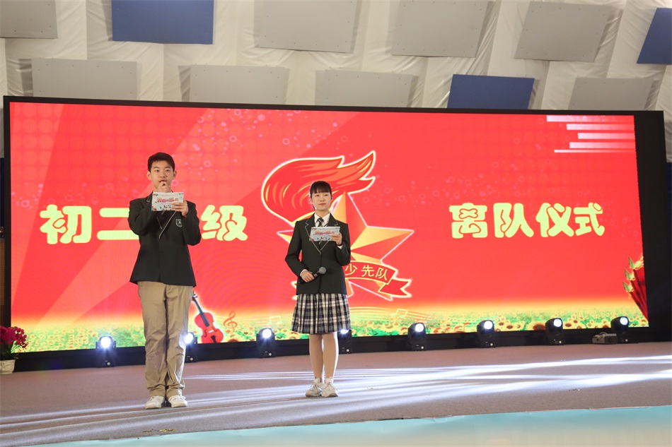 时光匆匆,这群曾经稚气的少年已经14岁了,初中部副主任戚玲芳老师宣布离队之后,他们再次深情地凝望队旗,庄严地敬了最后一个队礼,在熟悉的《中国少年先锋队队歌》声中郑重地摘下胸前的红领巾,告别懵懂的童年,将红领巾与童年时光一起珍藏。校党总支副书记张蜀江老师为学生代表颁发了离队纪念卡,欢乐的童年定格在此刻,相信同学们将迎来更美好的青春。再见,童年!你好,青春!