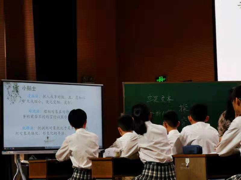 我校初三语文组马宏妹老师展示了一节《小说文本探究题解题指导》课,课堂上首先给出的是不同学生在答题时出现的失误点,学生自己分析后交流失误的原因,老师自然呈现南京市中考考点,然后围绕文学类作品中夸张、对比和细节描写等手法,勾连旧知,紧扣文本,