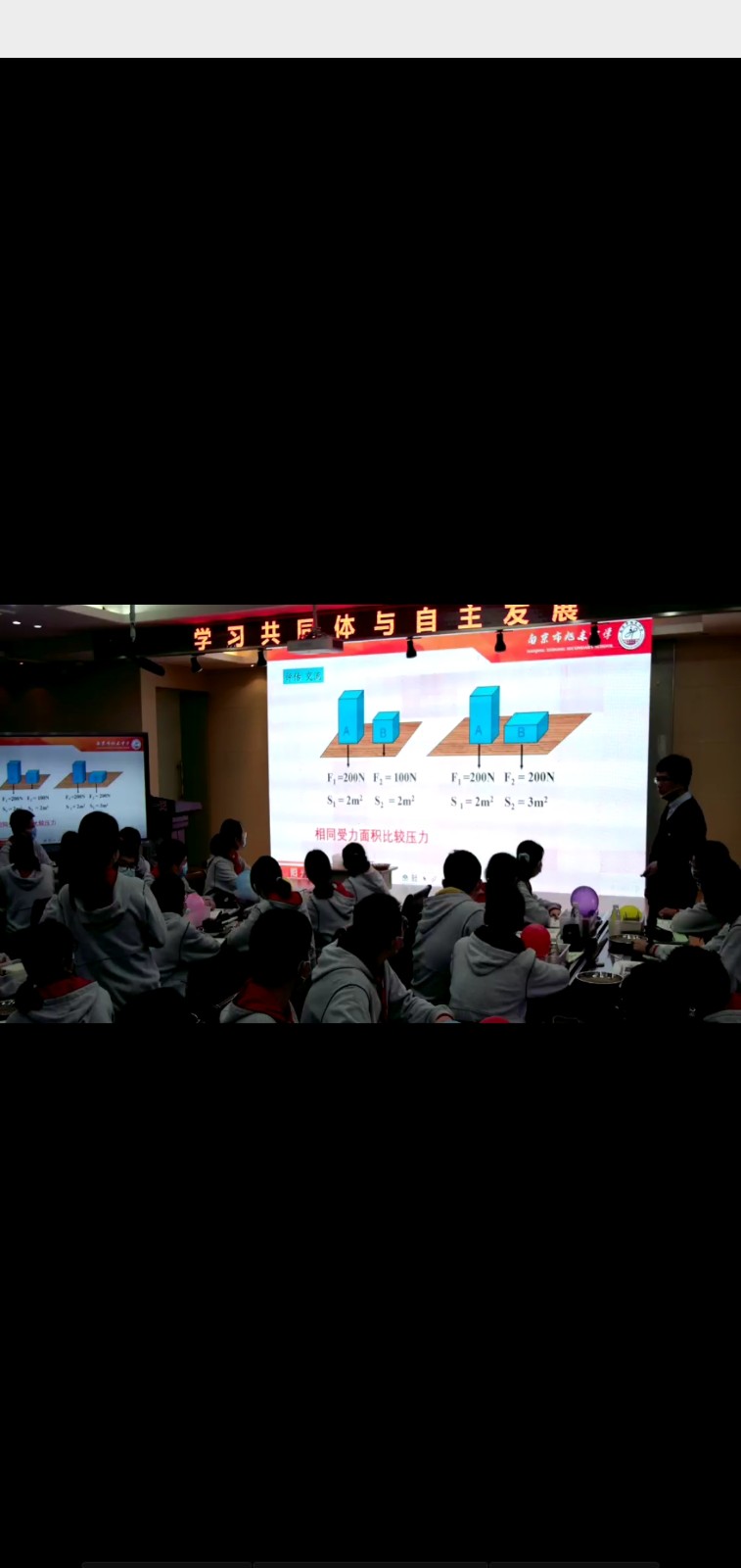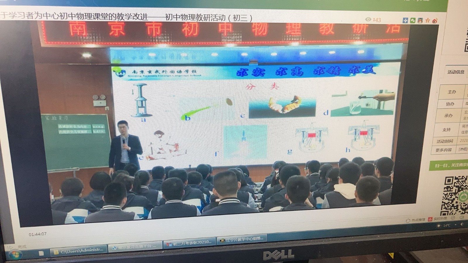历经艰难,我们终于可以观看活动视频了,主要研讨课题8年级《压强》和9年级《力》复习。为了老师们各取所需,我们决定自行观看视频,虽然无人监督,但是老师们也观看的很认真。