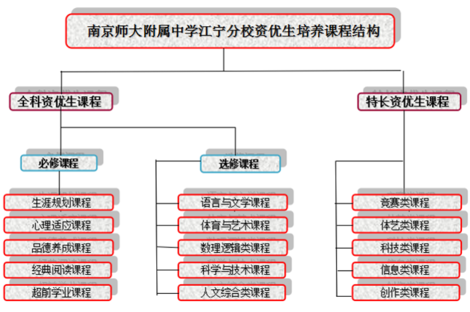 (1)资优生课程:包含全科资优生课程和特长资优生课程。