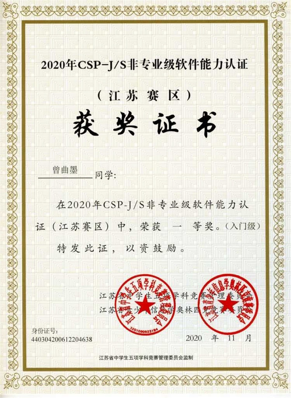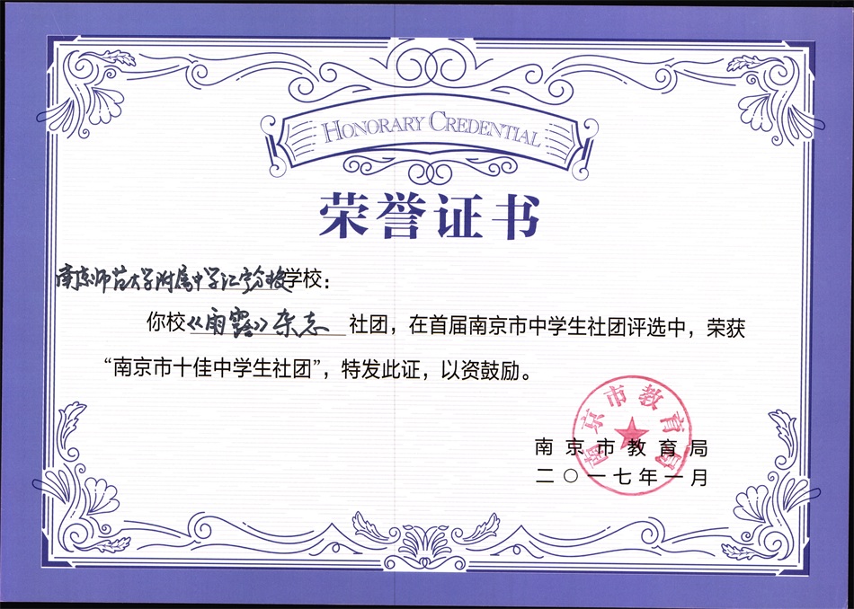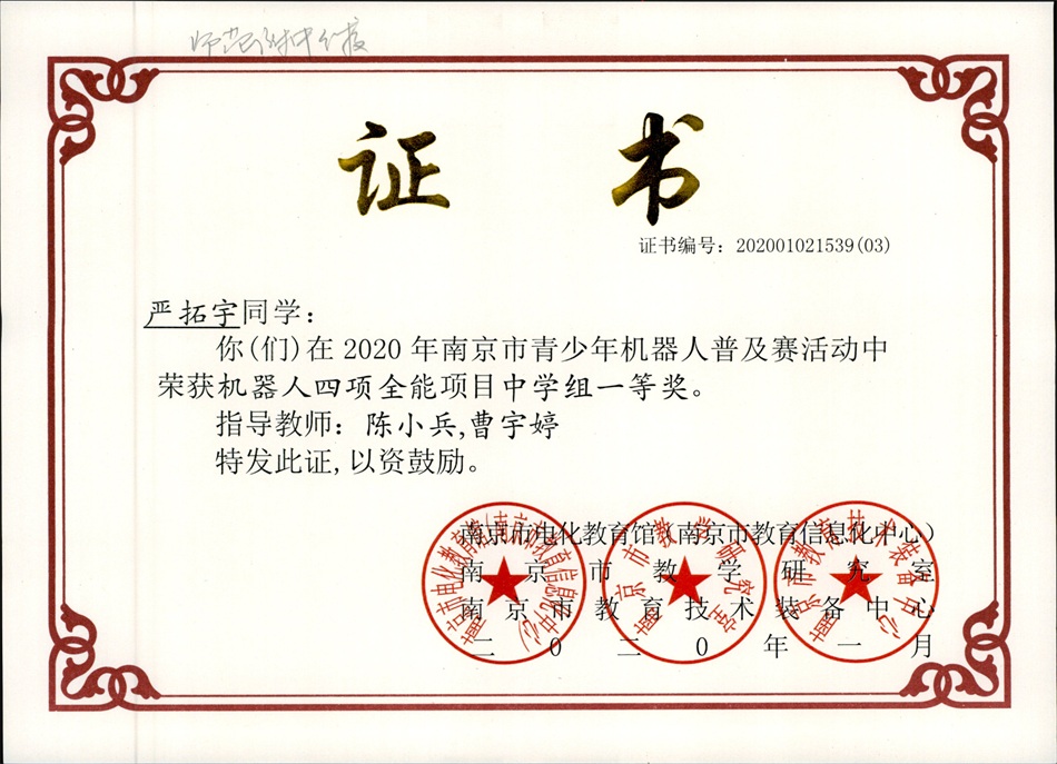 学生素养不断提高,个性化发展优势明显。以2020年度为例,学校共有413人次获得省市级及以上奖项,世界机器人大赛(WRCF)、全国信息奥赛、全国青少年创意编程与智能设计大赛、江苏省作文大赛、数学“时代杯”、物理“随园杯”、希望英语风采大赛、全国青少年建筑模型和航空、航天模型教育竞赛、南京市乒乓球比赛、田径赛、各类艺术展演赛中,均名列南京市前茅。学生在不同的领域展示自己的特长、寻找自身的价值。