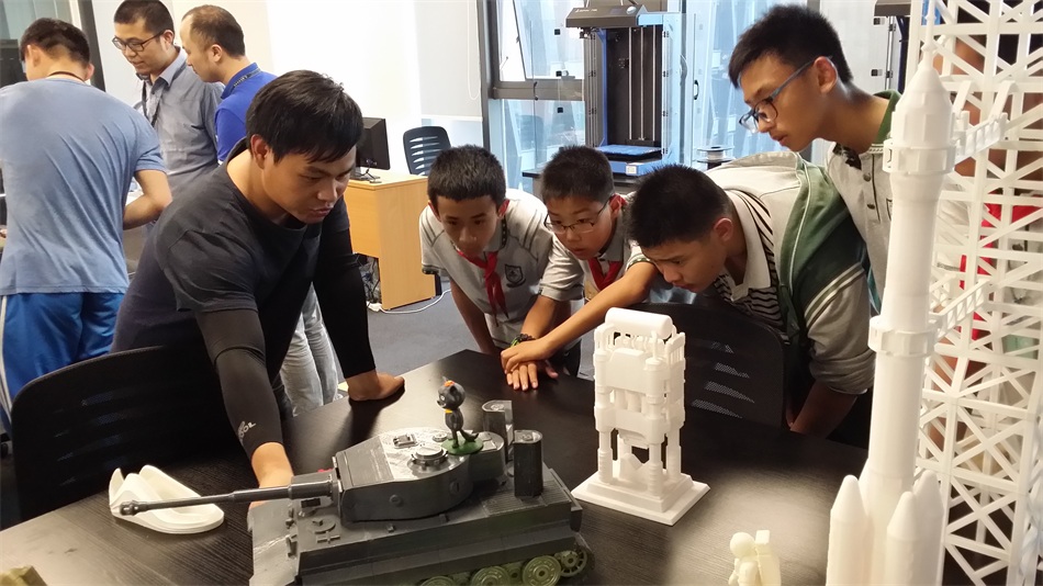 福特公司领导指导学生制作机器人