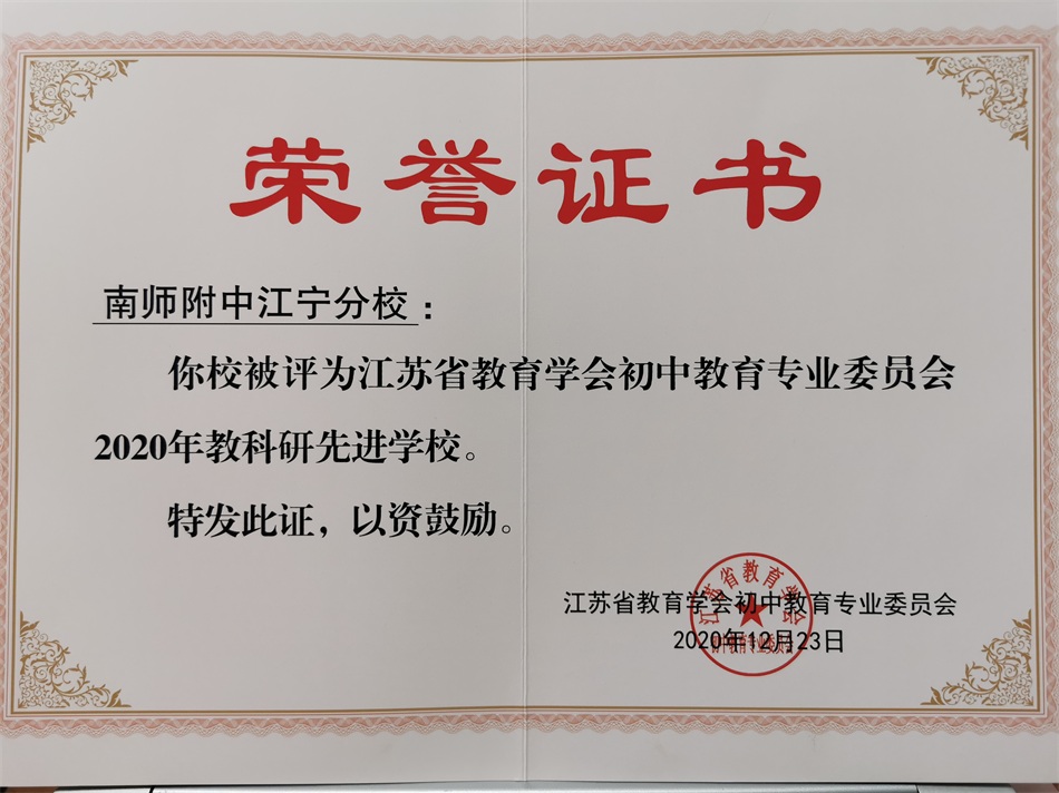 2020年,初中部师生成长喜人。陈舒老师被评为第三届南京市德育带头人,石爱平老师被评为江苏省教科研先进个人。桑小妹、王晓琳、刘沁心等多名教师在市区级教学竞赛中获一等奖。