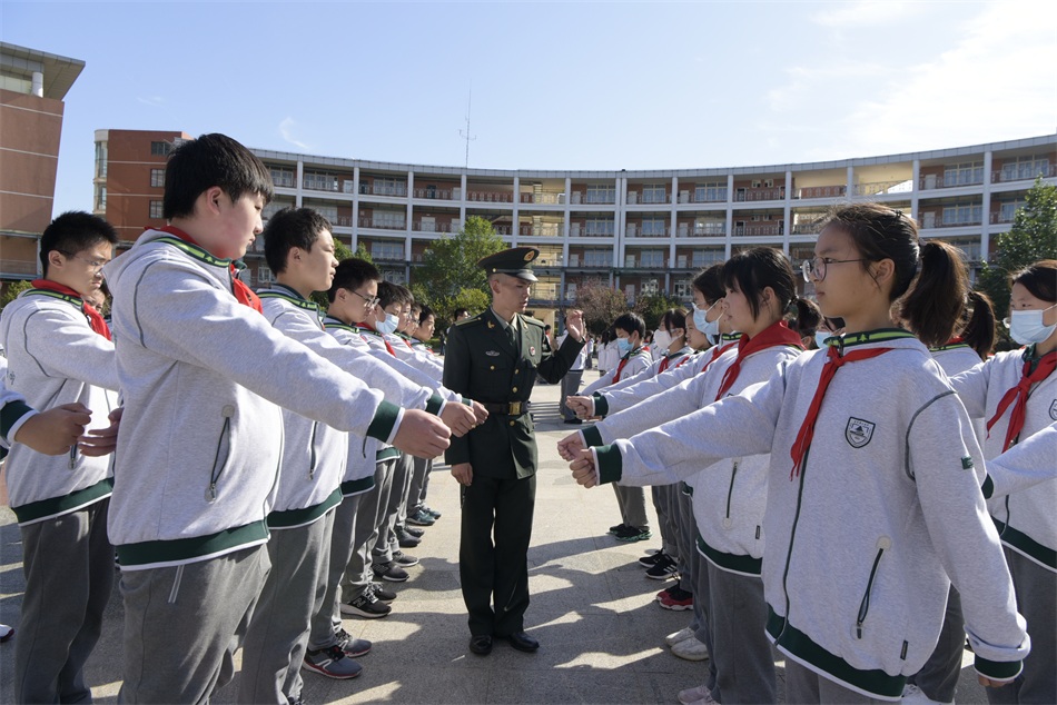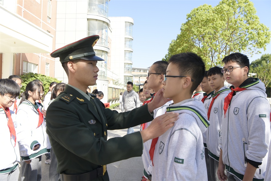 部队邵教官,学生发展中心主任王俊华老师,初中部副主任戚玲芳老师。