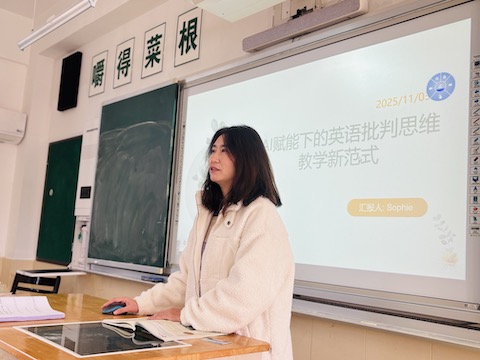为深化我校英语阅读课堂教学改革,聚焦学生思维品质培养,推动核心素养落地课堂,2025年11月3日,我校初中英语组于A5-505教室开展思维性阅读课堂实践专题讲座活动。本次活动邀请组内陈晓惠、余思齐两位老师分享教学经验,全组教师齐聚一堂,共探思维型英语阅读教学的有效路径。