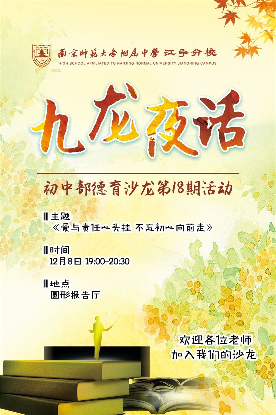 10月27日晚,初中部“九龙夜话”德育沙龙第16期活动如期举行。