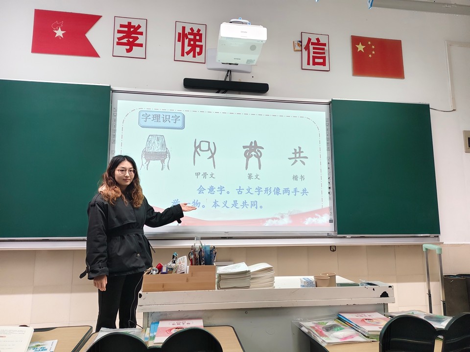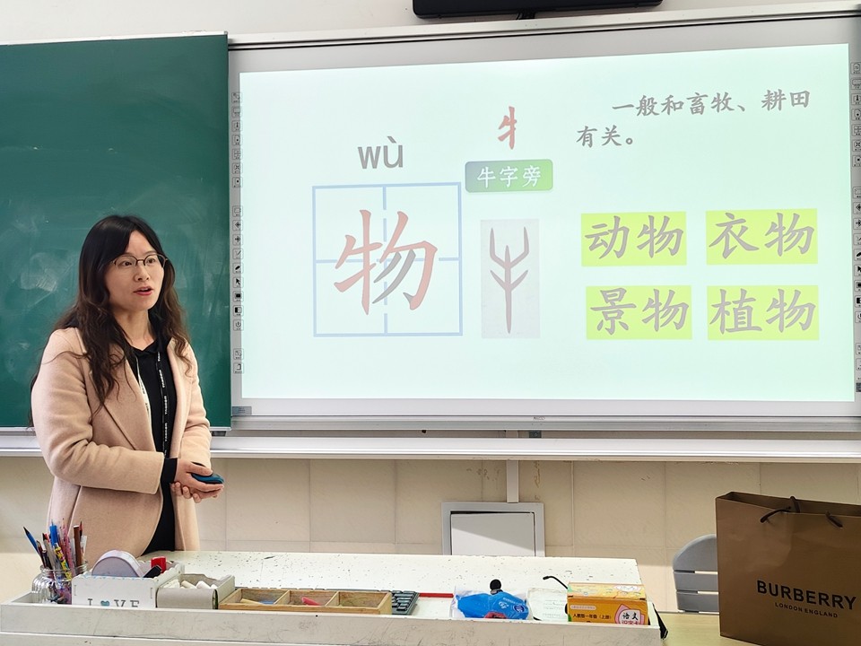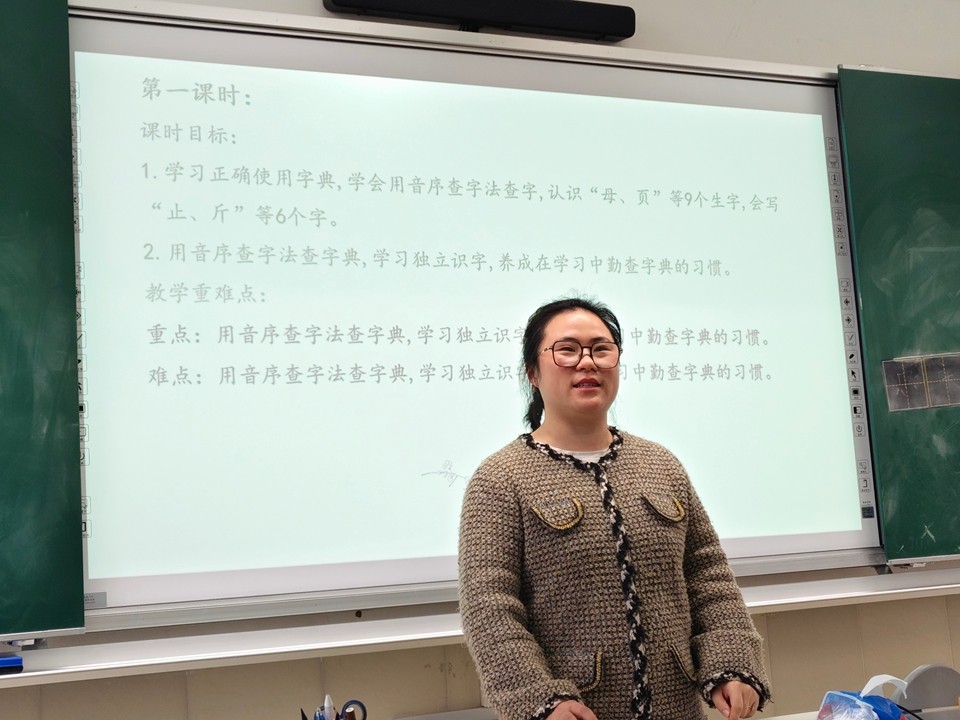 三月里,罗静、方洁、吴红三位老师分别开设了组内课。在集体备课时,三位老师分享了自己的课堂设计思路与教学重点,其他组内老师纷纷进行了点评。郭梦蝶老师对罗静老师的课堂给予高度评价,称赞其课堂有深度、有层次,文本解读到位,借助AI提问的方式有效提升了学生思维。方洁老师重点展示了AI 创作在课堂中的创新应用,为数字化教学提供新思路。吴红老师则以形声字规律为切入点,通过虫字旁、走之底等偏旁归类教学,结合“汉字小百科” 趣味板块,让学生掌握识字方法;设计“看家本领秀一秀”“动物才艺比一比” 等互动环节,依托儿歌朗读、对读游戏、句式仿写,让学生在趣味活动中理解“谁在哪里干什么”的核心句式,实现从知识学习到能力运用的跨越。老师们一致认为这节课的板块清晰、教学扎实,随文识字与趣味互动结合,充分调动了学生积极性,形声字教学循序渐进的设计值得借鉴。