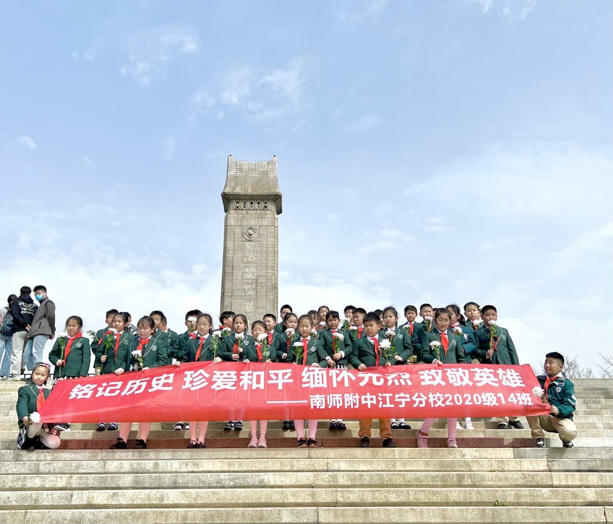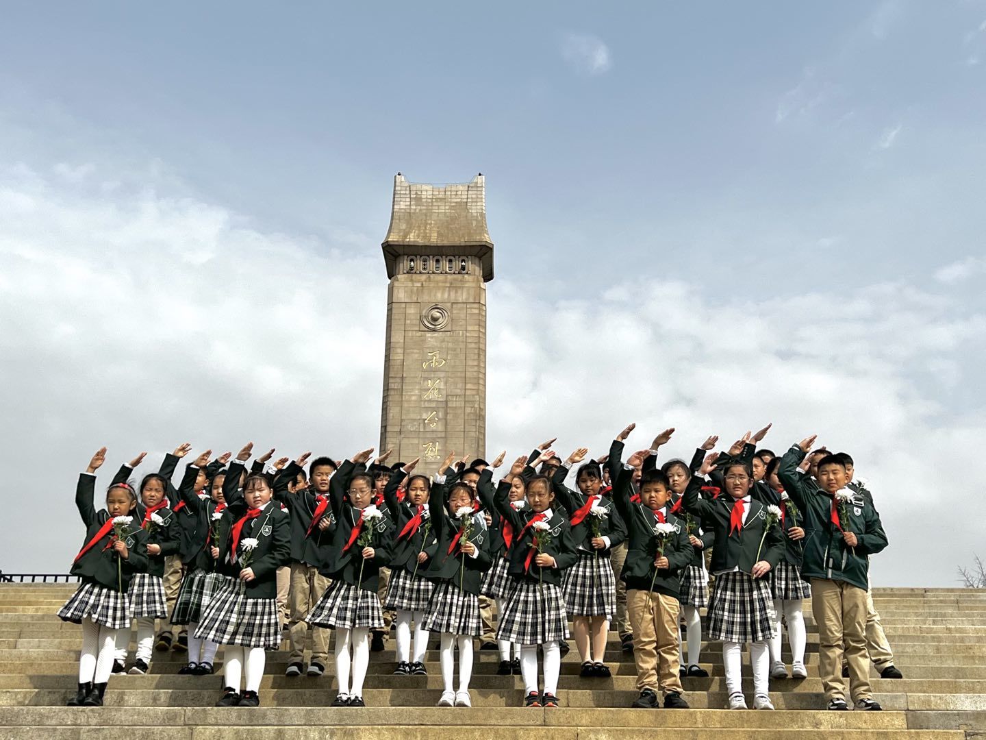 “记得三年级那个清明,我们第一次走进雨花台。”主持人朱怡瑶、乔宣赫以深情的朗诵拉开序幕。