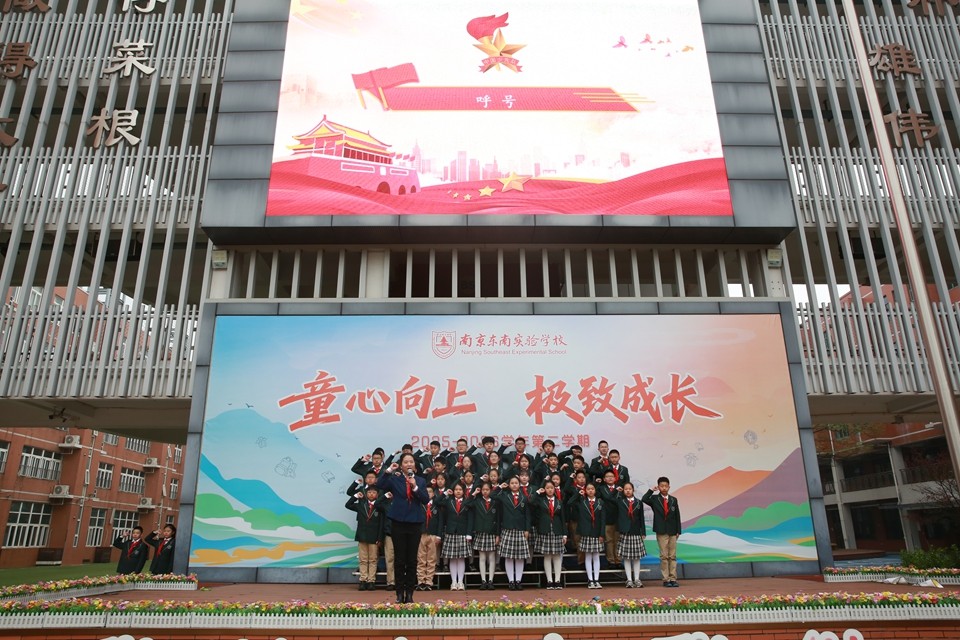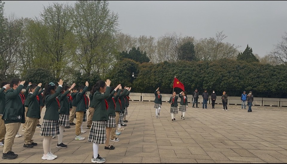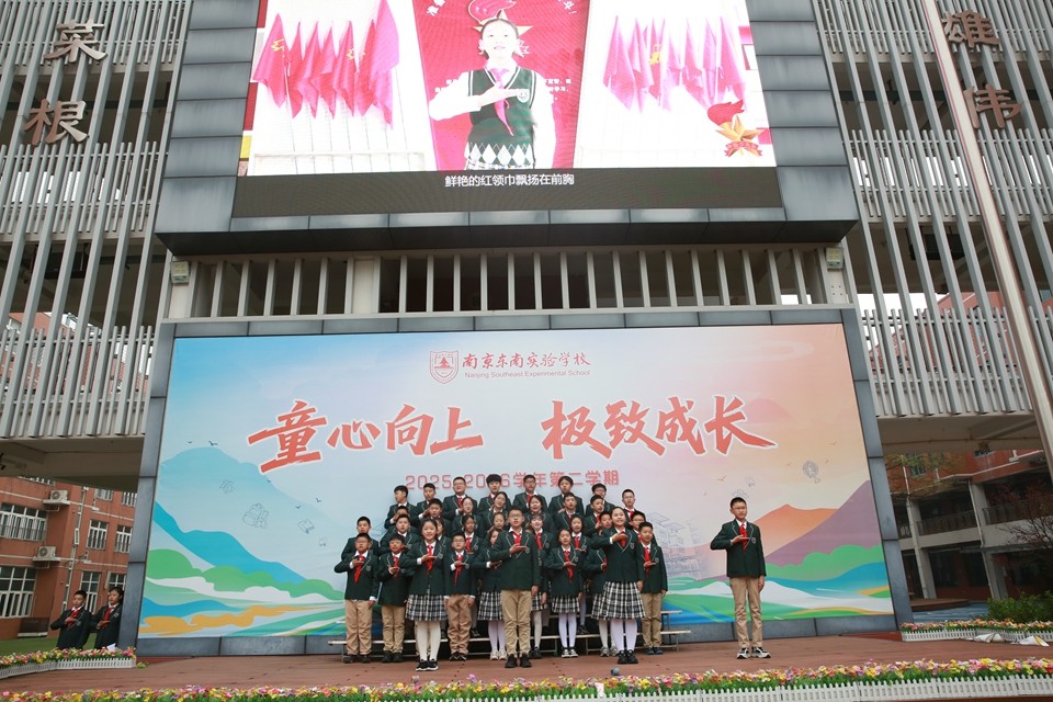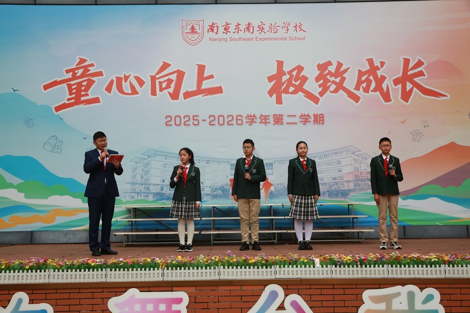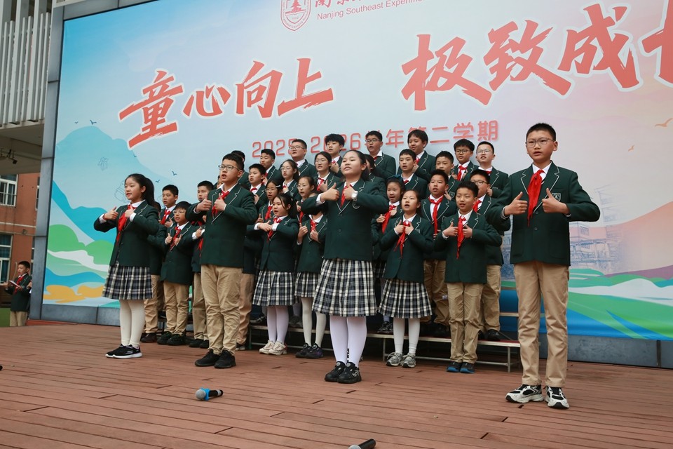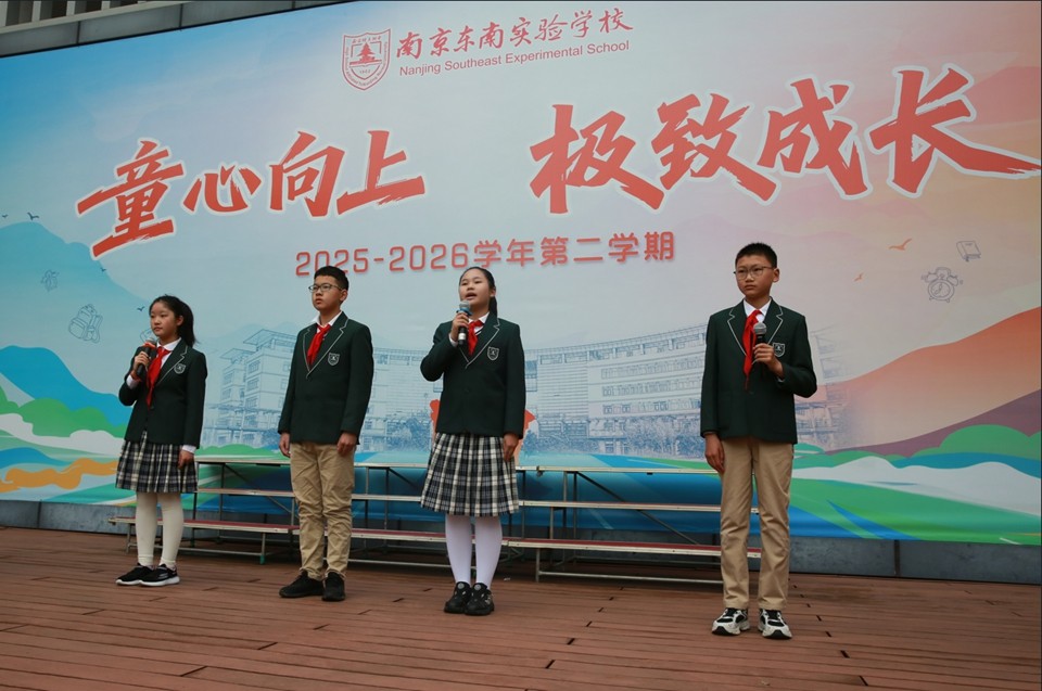 三月春风拂绿金陵,玄武湖柳条吐翠,雨花台梅花绽放。3月31日上午,南京东南实验学校小学部全体师生齐聚升旗广场,举行“在缅怀中传承,在春光里成长”主题升旗仪式。本次活动由六(14)中队承办,旨在引导少先队员在铭记历史中汲取力量,在春日阳光下茁壮成长。