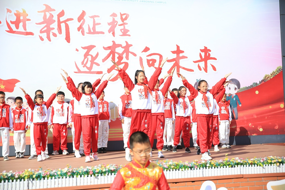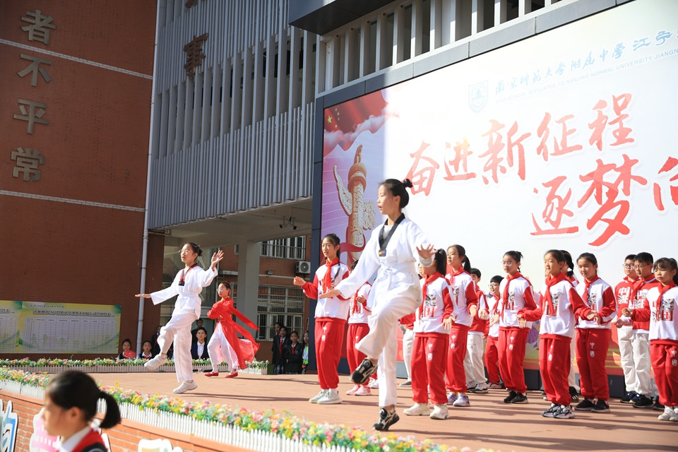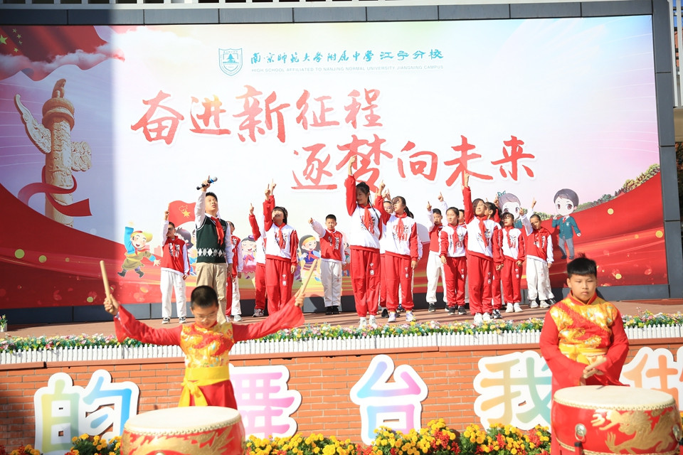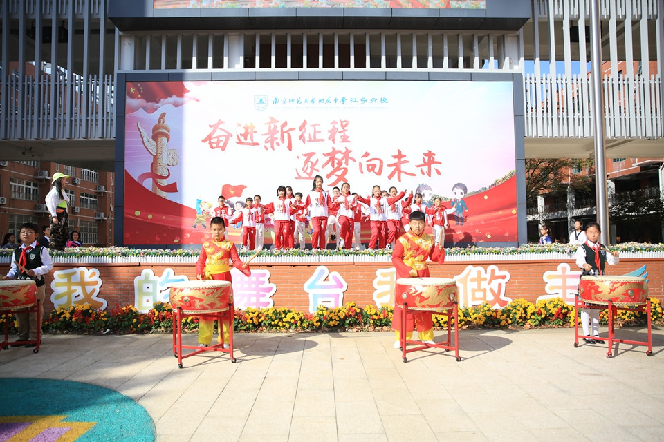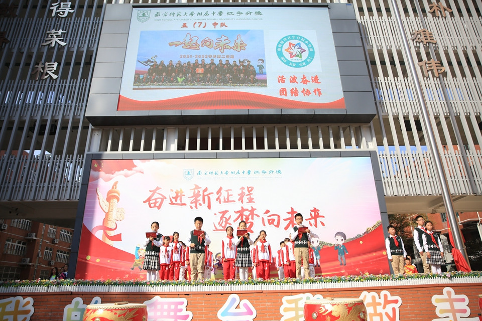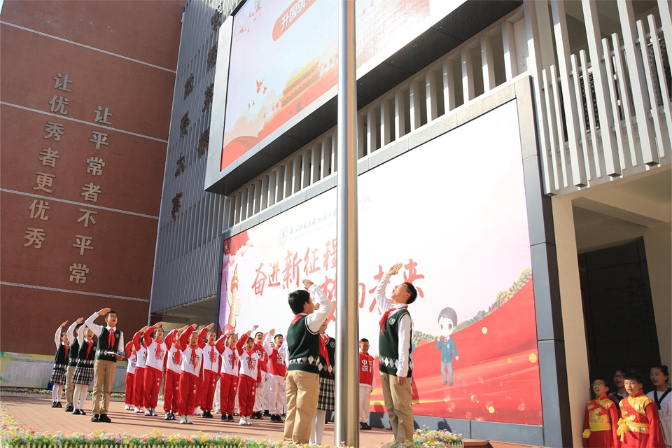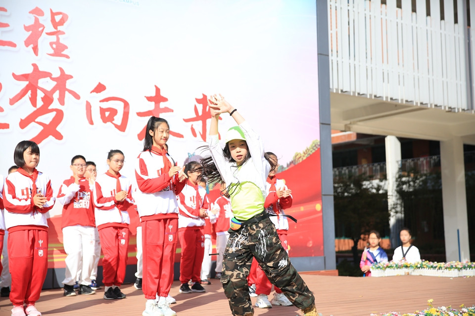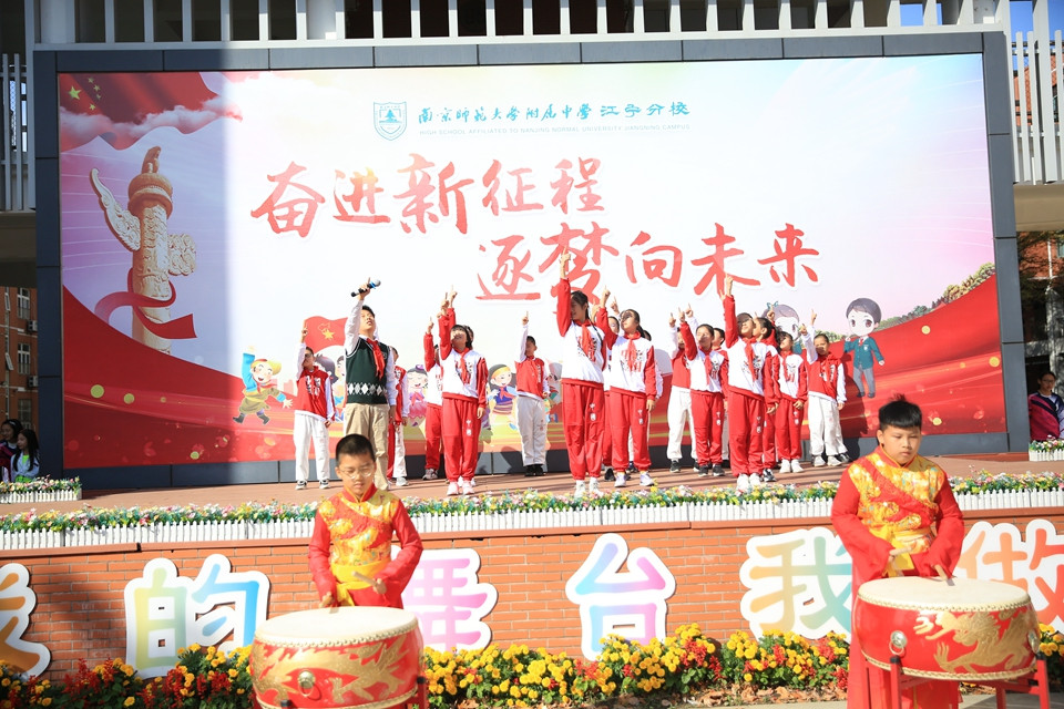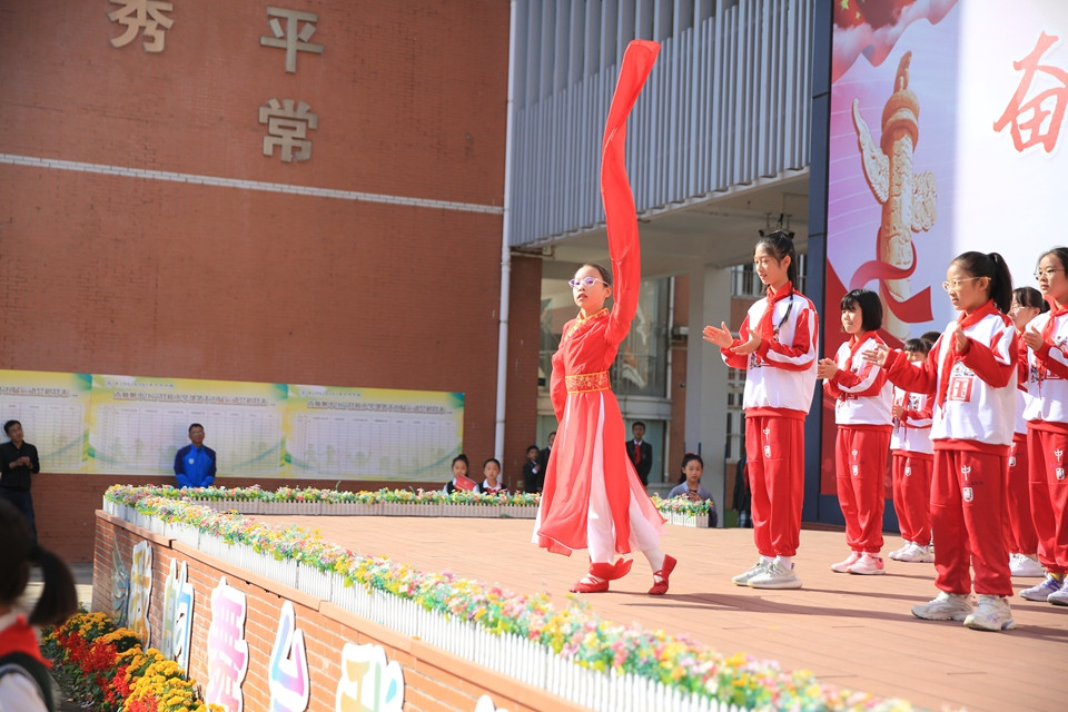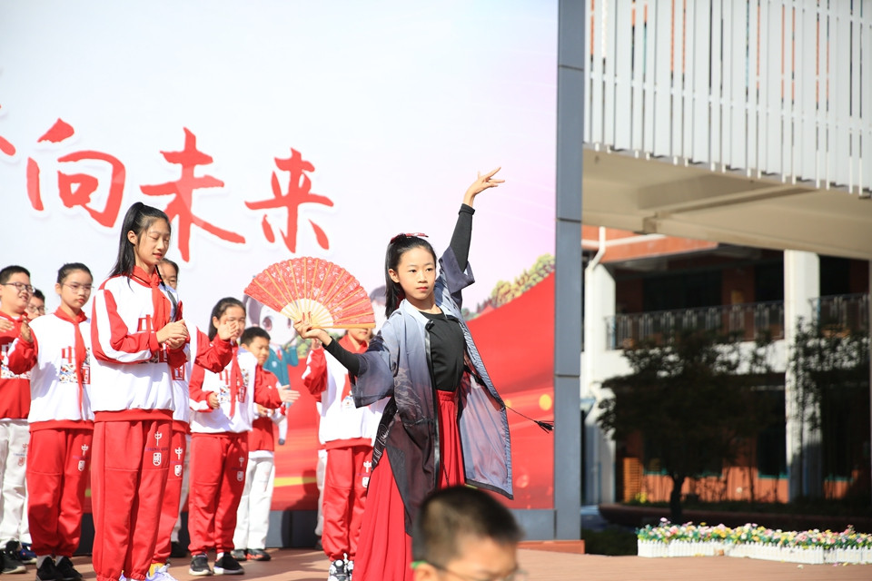 活动最后,全体学生齐声高唱《孤勇者》,声音铿锵激昂、震撼有力,把整场活动推向了高潮,升旗广场仿佛听到了赛场上运动健儿们那股“奋斗、拼搏的力量”。