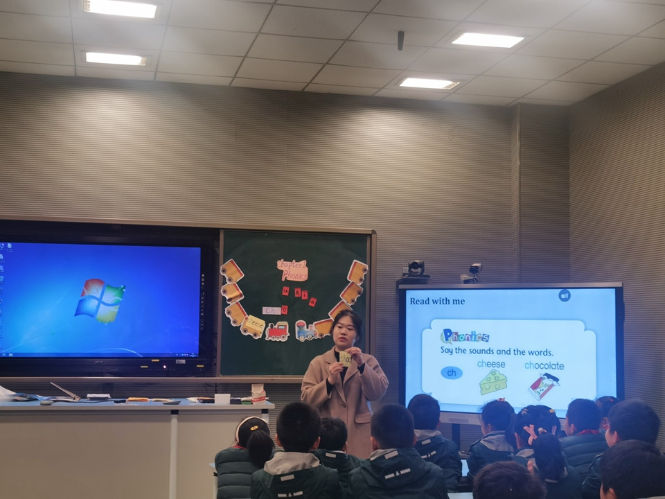 英语老师的课堂也多姿多彩、形式多样,老师们充分利用教学资源,歌曲、谜语、chant和游戏多种活动,充分调动每个学生的参与热情,青年老师们流利的口语和上课的热情让在场的评委和老师们赞叹不已。